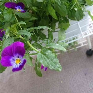 木洩れ日のライトを浴びて 柔らかく光る 紫色のビオラ 優しい春のそよ風に ひらひらと 蝶のように舞う 撮影: 2020.4.10. 公園にて ………………………………………………………………………… 💜初めてビオラを育ててみて💜 ~反省と疑問~ 昨年11月にビオラの苗を2株購入して、9号ポットに一緒に植えました。冬の間たくさんの花を咲かせて楽しませてくれたものの、暖かくなってからアブラムシがやってきたり、うどん粉病にかかってしまったり、トラブルが絶えませんでした。今は剪定してかなり小さな株になり、花が2~3個しか咲いていません。 GSの皆様のご投稿や、公園や住宅地の花壇で見かけるビオラ、パンジーは今でもとっても綺麗!私も皆様のように上手に育てられるようになりたいと思いました。 次に育てる時のために、ここに今回の反省と疑問を書き残しておこうと思います。 〈今回気をつけていたこと〉 ・定期的に肥料をあげること ・水やりは午前中 ・花や葉に水がかからないようにする ・こまめに花がらを摘む 〈経過と反省〉 1. 鉢に植えてから、花に対して、葉がものすごく増えた。草丈も高くなって、モコモコした感じになった。【この時に、切って、風通しをよくしてあげるべきだった‼️】 2. アブラムシが発生。早い段階で「やさお酢」をスプレーして退治できた。【早期発見・早期対策が重要‼️】 3. 初めて白い粉のついた葉を発見した時、すぐに病気だと気づけず、長い間放置してしまった。【これがよくなかった‼️】 4. 病気だとわかってから、白い粉がついた葉を摘むようにしたが、白い粉はほぼ全体に広まった。アブラムシも再び発生した。今回は数が多かった。アブラムシ退治と病気の治療のため、やさお酢をスプレーしたが手に負えず、もうだめかと思った😫【病気について、やさお酢は治療用ではなく予防用‼️】 5. たとえ病気でも咲いている花を切るのには抵抗があったが、白い粉とアブラムシがひどいところから、思いきってバサバサと剪定。また、できるだけ化学成分の入った殺虫剤は使いたくなかったが、使うことを決意。剪定後に、フマキラーの殺虫殺菌剤をスプレーした。→ほとんどの葉と花はなくなってしまったが、ようやく一安心できる状態になった💦 〈次回は〉 ・葉がもこもこしてきたら、早めに切って風通しをよくして、うどん粉病とアブラムシの発生を防ぐ。 ・うどん粉病の予防をする。やさお酢で。 ・うどん粉病にかかったら、早いうちに対処する。剪定とフマキラー殺虫殺菌スプレーで。 ・アブラムシは早期発見が重要。やさお酢で手に負えなくなったら躊躇わずにフマキラーの殺虫剤を使って駆除する。 〈疑問〉 ・アブラムシ予防のために、葉水をしてよいか?育て方に、花や葉に水がかからないようにと書かれていたが、屋外で育てられているビオラ、パンジーは、雨に濡れても綺麗に咲き続けている。 ・なぜ葉が増え過ぎてしまったのか?肥料に葉がよく育つ成分が多く含まれていたのか?肥料の量が多すぎた?また、チッソ分が多い肥料で、アブラムシの好きなアミノ酸がたくさん合成されてしまった?