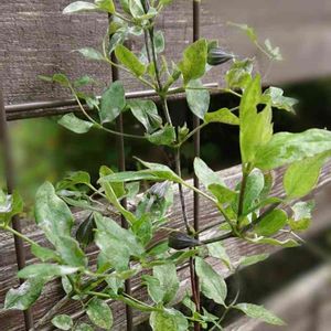 以前から欲しかったクレマチス篭口🌿 ついに4月植え付け💕6月に入って二つお花も咲いたのだけど、ひどいうどん粉病😱 春の終わりに近くのビオラにもうどん粉病が発生してた…💦 毎朝の花柄摘みで感染させちゃったかも…😓 薬剤をかけても回復せず、思いきってバッサリ切り戻すしかないかなぁと覚悟を決めたのに、見ると6個も次の蕾が…😲 はかなくも覚悟は打ち砕かれ、まだ切れずにいます😅