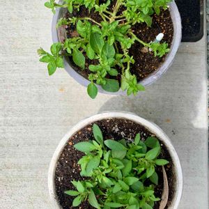 うどん粉病にかかってしまった ペチュニア2株…😢 とりあえず白のぶつぶつの葉を 切り、スプレー振りかけて様子見てます😢
