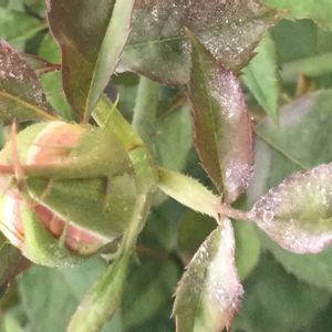 先月買ってきたミニバラなのですが、数週間前からうどん粉病のような症状が見られ始めました。 霧吹きで水をかけながら洗い流してみたり手で拭き取ったりしていたのですが段々広がってきてしまい、3日前くらいにベニカXファインスプレーを購入し散布しました。 ですが、良くなるどころか出てくる新芽を中心にどんどんうどん粉にやられているようで困っています。 他にもミニバラがあるので広がって行くのをどうしたら止められるかご教授頂ければ有り難いです。 やはり、1度うどん粉の症状が出た葉は新芽であっても切り取った方が良いのでしょうか? 新芽の先には小さな蕾も出てきていて思い切って切ってしまうことが出来ずに迷っております。 よろしくお願いします。
