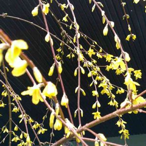 世の中暗いニュースばかりなのでハッピーカラーの画像をアップ。 枝垂れレンギョウ。