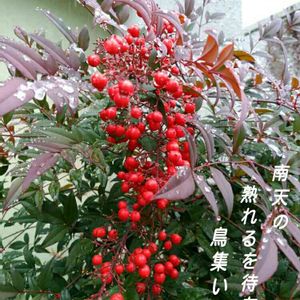 朝早くから雀?がチュンチュン啼いてて。 飛び立つまで玄関から出るのを遠慮している今日この頃。 鳥たちはちゃんと実が熟してから朝食をついばみにやって来ます。