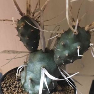 Tephrocactus articulatus var.papyracanthus 昼の弥撒に花芽と思ったら、お団子が二つ増えました😆