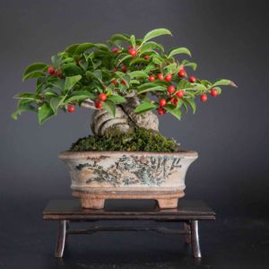 ちょっと気合の入った盆栽。 陶翠鉢に入った梅もどきです。