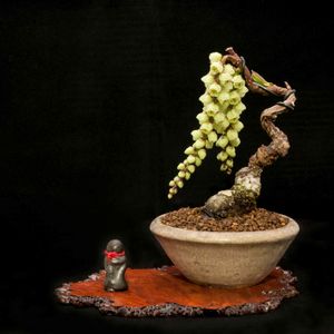 頑張って作った蝦夷キブシです。 とにかく良い感じに花が咲いた時の写真。 鉢は景仙です。