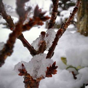 旭桜 一才桜 一気に積もった雪の中でも赤い蕾をつけてます。頑張れ!