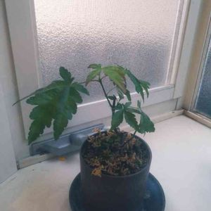 ミニ薔薇 イエローメイアンデイナ 寒さで蕾は赤っぽいですが 黄色からオレンジに変わります 昨年の台風🌀で 棚から落ち折れてしまい 折れたとこを剪定 こじんまりなりましたが 元気 盆栽仕立てのひと鉢🍀🌹