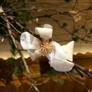クレマチス(テッセン)のアンスンエンシスの盆栽風 元々、良い曲がり具合で、花も咲き始めました。 照明のせいかもですが、なかなか渋い仕上がりです。