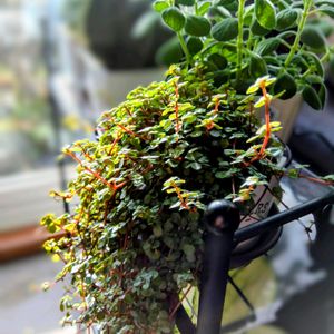ピレアグラウカ 小さな葉が可愛い子です屋内の時はヒョロヒョロしてたのに外に出したらしっかりと育ってます💕 トールペイントしたジョウロに❣️