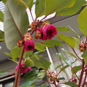 ロドレイア 薄茶色蕾の時から、気になっていた。 やっと、開花。マンサク科。 別名シャクナゲモドキ 原産東南アジアから、中国南部。