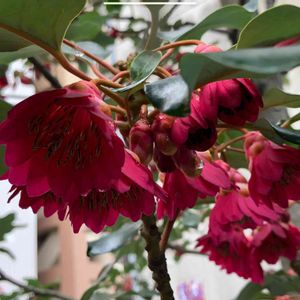 年末2021.12.18に投稿した ではなかろうかタグで投稿した方 そろそろショータイムです 今回は ではなかろうかタグは無しです 何故なら 写真整理をしていたら この子のお花全開の様子が 昨年の今頃のアルバムに たくさん収められていたからです 良くある事ですが 良く忘れます お散歩シリーズは 🏷 you-_-you+ その他 その中のマンサク科は 🏷 you-_-you+その他+マンサク科 ◇以下脳内整理の為の検索一部引用メモ◇ ロドレイア 学名 Rhodoleia championil / Rhodoleia henryi cv. Red Funnel 分類 マンサク科ロドレイア属 別名 シャクナゲモドキ 英名 Hong Kong rose 分布 東南アジアから中国南部 花期 2~4月 原産 中国 ◇ 春にローズレッドの花を咲かせる常緑花木 葉は光沢のあるなめらかな革質葉 花が枝先に集まって咲く雰囲気や樹性が シャクナゲに似ていることから 和名が「シャクナゲモドキ」 ただし、樹形は立ち性 強健で栽培容易 ◇ 数種類のロドレイアあるようですが、日本に導入されている種類は、ヘンリーとチャンピオニーいう2つの種だそうです 一般に栽培されているのは、ヘンリーという種類 ヘンリーのほうが、葉も花も樹高も大きめ ◇ヘンリー(R. henryi) 中国の雲南省に自生していて、 耐寒性が強く関東以西の暖地では庭植え可能 ◇チャンピオニー(R. championii) マレー半島やスマトラ島に自生しているため、 耐寒性が弱く、庭植えは困難