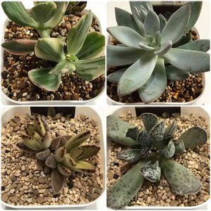 2020年 5月16日 こんにちは😃 今日は畑にも私にも良い雨☂️になりました😊👍 朝から多肉事がたくさん出来ました🙆♀️ まずは、葉挿しの大きくなった子達を植え替えしました。 ほぼ名前はわかりません😅😅 最近はちゃんと名前書くようにしてるけど初期の頃は書いてませんでした💦 こんな感じで良いのかもわからないけど、まぁいいか🤣🤣