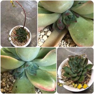 2020年 4月29日 本日2投目です❣️ 前々から気になってた暴れ白牡丹。 花芽が4つ。 子株が2つ。 多肉植物超初心者なので花🌼が見たかったので自然のままおいてたんだけど、もういいかな〜😊と思って仕立て直ししました❣️ 右側2つは根がないので心配だけど😅 どちらも元気に育ってね👍