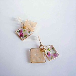 アジサイや折れてしまった花キリンの花を、レジン加工し、ピアスを作りました (^_−)−☆