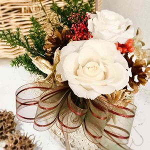 キュンキュン乙女倶楽部 🏷令和ホワイトクリスマスに 参加します😊 picは今月、講座で作った プリザーブドフラワーの クリスマスアレンジ🎄 クリスマスと言うと赤いバラ🌹かと 思ったら、白いバラのアレンジ☺️ 白も大人っぽくていいですね😊