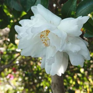 キュンキュン乙女倶楽部 🏷️ 令和ホワイトクリスマス ① 庭に咲いている白の山茶花です 清楚でふんわりと咲いている姿が大好きです.。.:*♡✿ฺ 今日はクリスマスイヴですね 皆さんどのように過ごされますか✨🎄🥂✨ ♡ॢ*‧˚Merry Christmas♡ॢ*‧˚