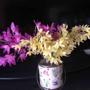 デンドロビウム キンギアナム 匠&輝 花茎をカットしました。合わせて二十数本たくさん咲いてくれました。 お疲れ様。 テレビをバックに背後霊(自分自身)?が映り込まないように気をつけました。 キンギアナム映えてる?