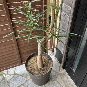 夏頃に安売りされていたブラキキトン アケリフォリウスをお迎えした。 8000円→4000円。 鉢を含む高さ約145cm、木だけでも100㎝程のサイズは室内に入れると圧迫感があるが、寒さに備えての事なので致し方無い。 可愛い形の新芽を続々と出している。 ボトルツリーは我が家に現在4種類いるが、どれも良い。