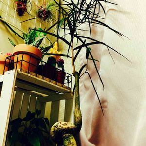 ボトルツリー・ブラキキトン。 自由な枝ぶりと涼しげな葉が好き♡ 猫が届かないように底上げ中。 ぐんぐん伸びてほしいものです^o^