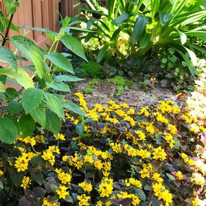 リシマキアさん 去年、寄せ植え鉢から地植えにお引っ越しさせました。 とっても増えてお花を沢山咲かせてくれています🌼🌼