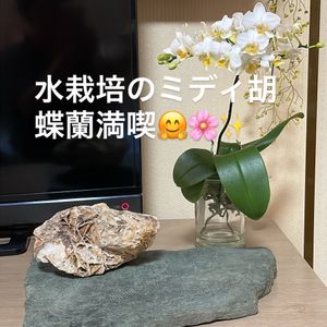 GSの皆様こんにちは☔️ 昨夕からこちらは雨降りになりました。 少し肌寒いですね。 水栽培のミディ胡蝶蘭 Luke(ル一ク)🌼ほぼ満開になりました😍💕🎶🎊👍 この石🪨あるTV📺横は 私お気に入り部分のひと場所です。 ミニ盆栽や苔🪴、花々と外から取り入れて置き 楽しみます🪴💕🎶✨ 狭い部屋も!少し工夫で 癒し空間に早変わり🥰👍 GS投稿画面から工夫いっぱい頂き感謝🙏💐💕 今日も皆様にとって幸せ💕💐な一日になります様に🤗💕🎶💐✨✨ 今日の一枚ありがとうございました🙇♀️🌼🍃
