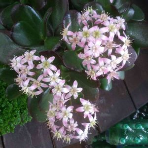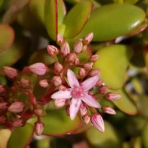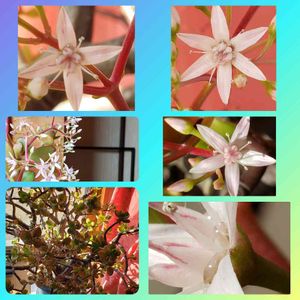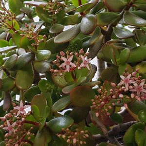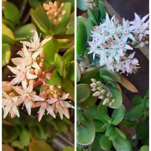大きな金のなる木が花を咲かせ始めました🌸 花言葉は幸運を招く💖 二人目の甥っ子が結婚決まりました🔔💏🔔 心なしか紅白に見える🌸🌺 ず~っと仲良くしてね💕