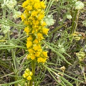 緑の中に翠の若葉、なんとも見難いですけど、カワラマツバの茎と葉が立ち上がっています。まだ花序を付けていませんね😅 名前の通り、ツンツンとした線状の葉で、かなり大きな株に育ちます。よく湿原とかに蔓延っている野草ですね。 花は4弁花なんですけど、個々の花は数ミリしかないので、クリーム色の花序が泡のように固まって見えます。