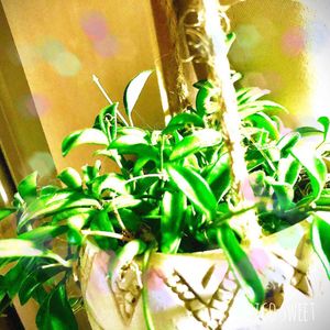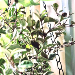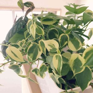 仰げば尊し😍 エレンダニカとポトスの盛り合わせ あ。寄せ植えか💡 むかーし買ったカインズホームの編み編みの小さなカゴで吊るしてます 寒くなってきたからリビングに植物大集合 窓辺がミチミチ🤣
