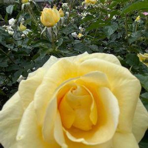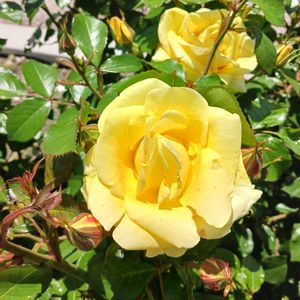 こんにちは😊今日のお花、薔薇の アンドレ グランディエです🌹🌹ベルサイユの薔薇シリーズのお花です。 オスカルに寄り添った強く深い愛を秘めた心を表現したそうです😊✨✨ ライトイエローと花色丸弁平咲きの姿が素敵な薔薇です🌹💕💕 黒点病に強いのは黄色系品種の中で希少だそうです😊 初めてですが🏷金曜日の蕾たちに参加させて下さい😌 よろしくお願いします。
