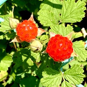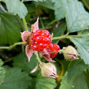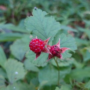 ナワシロイチゴ(苗代苺) バラ科 キイチゴ属 5~6月 20~30cm 在来種 落葉低木 果実が赤く熟していた👏 受粉後に萼は閉じ、果実が熟すと再び萼は開く