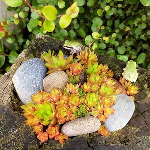 6/1投稿のミニ盆栽🌱 根づいたようなので苔をはりました。むずかしかった… 初めて外に出したけど、お水好きのこの子達は梅雨がちょうどいいみたい☂️ 葉数が減ってしまったけど、ここから盛り返してくれるはず✨