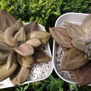 ★デビー どうも♪ 野良多肉ってホント強いですねー😊 うちでは野良チョンパの子持ち万年草が ムカゴ祭りで子株落としまくってまして、 すでに不死鳥並みの爆殖率です😅 これじゃ雑草扱いされるのも無理はない(笑) 本日はみんな大好きデビー♪ アメジスチヌムを母親にもつ、 年中ピンクのグラプトベリア代表格‼️ 葉挿しも容易で成功率も高めなので、 どこのお宅にもあるんじゃないかって程の 超普及種だと思います✨ picの子は元々放置してた子なんで、 ちょっと痩せてますがご容赦ください😝 デビーは ♀グラプトペタルム アメジスチヌム(酔美人) ♂エケベリアsp.(不明) の交配種といわれており、 自然交雑で発生したという話もあるようです。 デビーの名は人名由来。海外ではデビーの他に、 パープルクィーンという名前でも流通しています✨ また、日本で流通しているのか不明ですが、 同じアメジスチヌムを母親に持つ交配種で、 グラプトベリア 'Spirit of '76'という類縁種と しばしば混同されていたりするようです🤔 父側の品種が何か気になって仕方がない😆 -∴-∵-∴-∵-∴-∵-∴-∵-∴-∵-∴- xGraptoveria 'Debbi' グラプトベリア 'デビー' 和名 なし 別名 パープルクィーン シノニム xGraptoveria 'Purple Queen'