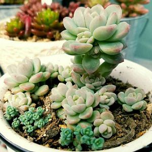 こんばんは(*^O^*) 明日から冷え込むみたい 氷点下いきそうなので多肉花壇にビニールかける予定😅 本日はルイーズ あまり大きくならないタイプかな? お子ちゃまも出てきたけど これ以上小さくはしたくないからカットかな~😅 実際はほんのり優しいピンクをしています🎵
