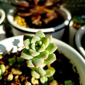 ( ゚ε゚;)むむむむ… 株分けして植え替えたら、何だか色が変わってきてしまった💦 真ん中だけ緑だけど…どうしよう💦