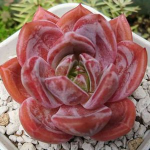 ★名も無き交配種シリーズ どうも♪ 昨日は例のごとくネタ帳忘れです😰 なので昨日投稿しようと思ってたネタを💦 第7回 グラプトベリアsp. またかよ‼️とお思いでしょう?🙄 でもね、爪ありな小型種がお好みなので、 うちは交配種の中でも特に、 銀天女交配が結構多いのですよ😅笑 母種の銀天女は苦手ですけど😂 交配種は雑種強勢で強いから(笑) 交配式は ♀銀天女 =グラプトペタルム ルスビー ♂エケベリア sp. 3/07,Tuxpan =エケベリア ピンウィール グラプトペタルムとエケベリアの交配なので、 もちろんグラプトベリアです✨ spなんちゃらTuxpanはピンウィールの別名です。 Tuxpanは「タクスパン」と書かれたりしますが、 これは地名のスチャラカ英語読みなので、 正しくは「トスゥパン」でしょう。 pinwheelは英語読みならピンホイール ラテン語でもそのまま風車や車輪という意味です。 ただ、学名の「w」はほぼ発音しないと思うので、 ピンヒールみたいな発音が正しいのかなぁ🤔 いかにも葉数が多くなりそな交配式ですが、 意外とそうでもなかったりする子。 うちでは😆 ⚠️交配種の名称までは把握しきれていないので、 すでに名前が決まっていたらゴメンなさい💦 逆にその交配種名前ついてるよ‼️って場合は、 こっそり教えて頂けるとありがたいです🙇 コッソリですよ?😎 -∴-∵-∴-∵-∴-∵-∴-∵-∴-∵-∴- xGraptoveria sp. グラプトベリアの一種 Parentage✨ Graptopetalum rusbyi × Echeveria sp.3/07,Tuxpan(Echeveria pinwheel) ※sp.=スピーシーズ(一種)の略