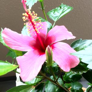 ハイビスカス フィジーアイランド・*:..。o♬*゚ かわいいローズピンクの花びら、 マスカラのようになが~く伸びる花柱、 つぼみもとってもシャープです。 先日、サカタのタネからお連れした ハイビスカスさんです🌺