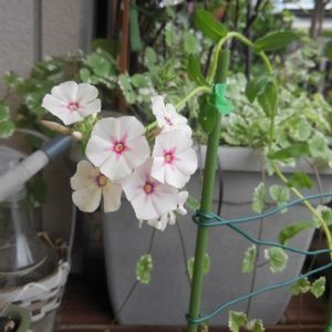 庭のヤグルマギク軍団の根元にひっそりと咲いている可愛い花を見付けました😊 あまりにひょろりと細長い茎にお花は初めて見る愛らしさ🌼 掘り上げて支柱に留めぐぐって驚きました✨ キキョウナデシコ ハナシノブ科フロックス属 学名「フロックスドラモンディ」 7月2日の誕生花🌼 初めて自分の誕生花に出会いました☆ サカタのタネミックスフラワーガーデンの種に入っていたのかなぁ⁉️🌾🥀