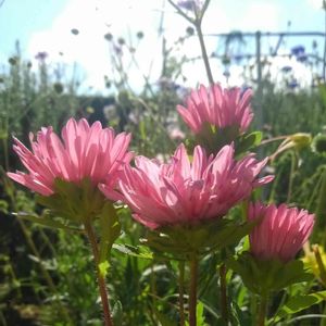サカタのタネミックスフラワーガーデンからピンクのアスター🌼が咲きました♪ヽ(*´∀`)ノ 去年とは違う桃色です。楽しい~*※*#×。