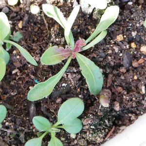 ミックスフラワーガーデンの種から発芽しました🌱 初めて見る葉っぱです🌿(´∀`) 宜しくお願いします✳️