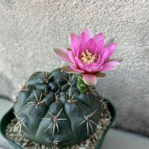 ダイソーの足元の棚の奥のほう、暗い所にいたサボ🌵さんを救出(?)して来ました。 まん丸ボディが可愛い❤️ 「ヒカダマ」と書かれているので、赤い花が咲くと思ったら、白?! 3日目にはピンクに変わりました