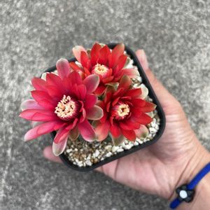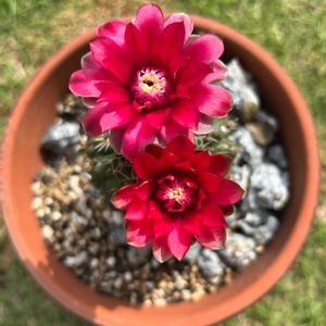 緋花玉 初めましてのお花です♪ 頂いたサボテンのお花が咲きました♪ ツボミは4つ! 全部咲きましたっ🌸 キャー💕嬉しいっ💕 感謝です♡