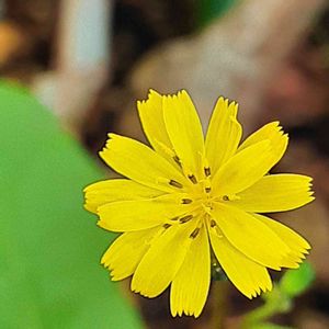 モンステラの鉢には いろんな子がやって来ます🎵 この前はスミレちゃん💕でしたが 今回は…(´・ω・`)? タンポポのお仲間さんかしら?😊💕 (🌼の後ろにモンステラの気根🔍)