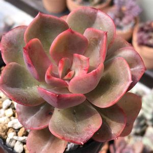 ラウイhyb×Yonmi(ヨンミ)って名前の子。 ラウイは分かるけど、ヨンミって多肉知ってる人居ますか? 検索しても出て来なくて(。・A・´∩ ラウイ系だけど、外側が紅葉してるからヨンミは赤系の子なのかな? 気になるぅʕ •́؈•̀ ₎