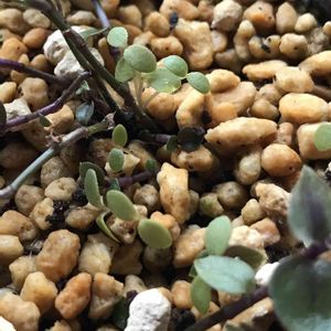 おやおや? ブライダルベールの挿し穂の小さな鉢に… なんか出てきた😅 隣にポリゴナムの鉢があったけど… それかな?