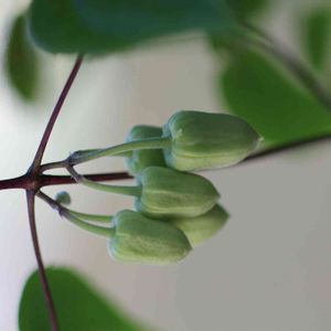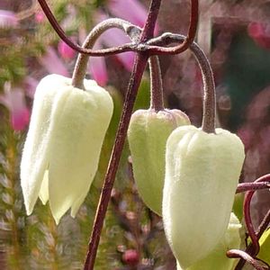 冬色のメロディーの蕾。真っ白なベル型の花を咲かせる冬咲きのクレマチスです。昨年のお花はタグをタップして・・🤍🌿 昨年は鉢で楽しんだ苗を、今年春に地植えしたら、フェンス1メートル位に広がり、蕾をいっぱいつけてくれました。花が咲くのが楽しみです。🤗