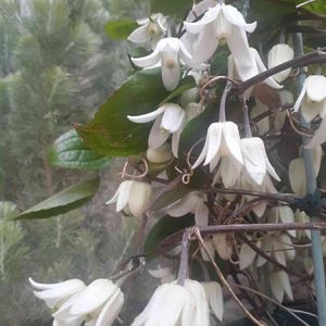 チロリアンランプと冬咲きクレマチスとのコラボです。2つとも蔓植物なので、フェンスからはずれて、ジュンベリーの樹に絡み合ってぶら下がっているのですが、可愛いので剪定できずにいます。 チロリアンランプは昨年近所の方からもらった枝を挿木して、ここまで伸びてきました。この植物も丈夫です。あとは、どう枝を剪定して2つをコラボさせるかですが、広がり過ぎて困り果てるかも・・。🤣