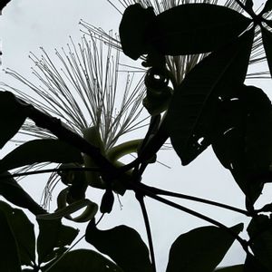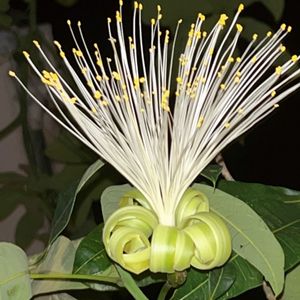 こんばんは🌙* :゚ 外に出ますと甘い香りがしたので見上げたら咲いてましたパキラの花❁⃘*.゚ 昼間オクラだったのにね(笑) パキラの花は上向きに白く放射線状に広がってるのは雄しべで花びらは下向きにカールした部分なんですって! ←(さっき検索して偶然知った(笑)) 綺麗でいいとても香りが漂ってます 🌃⋆☽·̩͙☆。.:*・゜