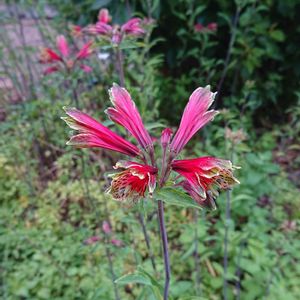アルストロメリア・プシタキナ(百合水仙) 初め見た時、なんて毒々しい‼️と思ってましたが、ちょっと離れた畑から、庭の畑へ移しました☺️ アルストロメリアの原種と以前聞いたような🤔⁉️