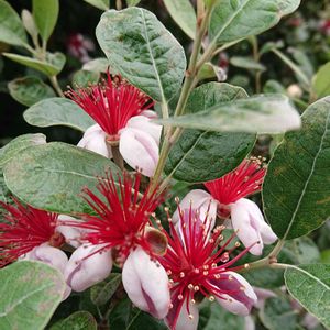 フェイジョア💕 産直とレストランがあるお店の駐車場にて🎵 つかちゃんのpic見てなければ、この花に気づかなかったかも⁉️ この前見たのは、蕾でした😅 てっきりもう実がなりつっあって、花に間に合わなかった‼️と思ってました😋