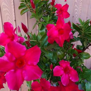 サンパラソル 3年目を迎えました☺️ 夏には強いですが、寒さに弱いので、このサンパラソルの為に、去年は、ミニビニールハウスを購入‼️ 無事に冬越しできて、たくさんの花を咲かせました😋 ちなみにサンパラソルは、サントリーがマンデビラを品種改良して、出したので、花つきもいいみたいです‼️